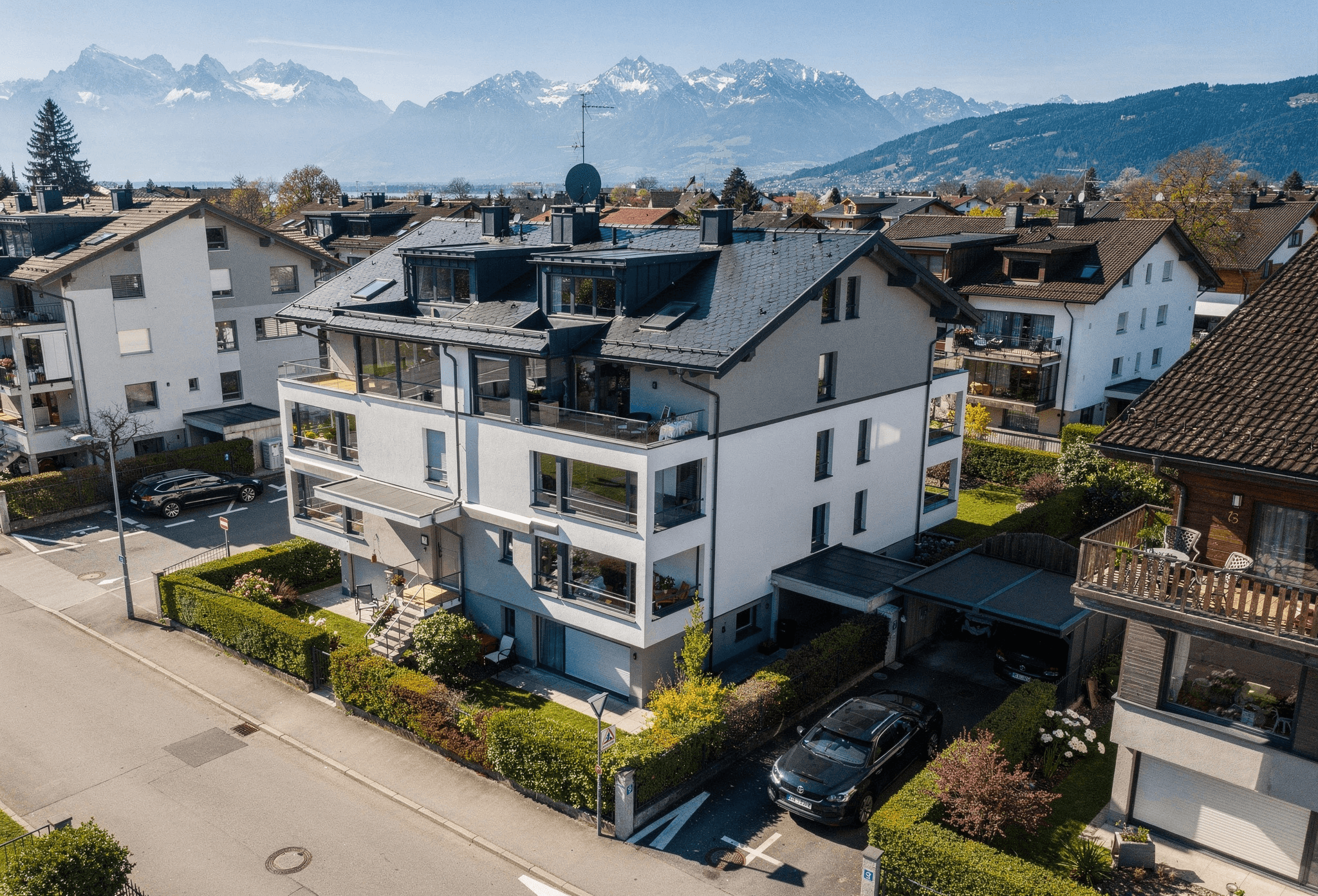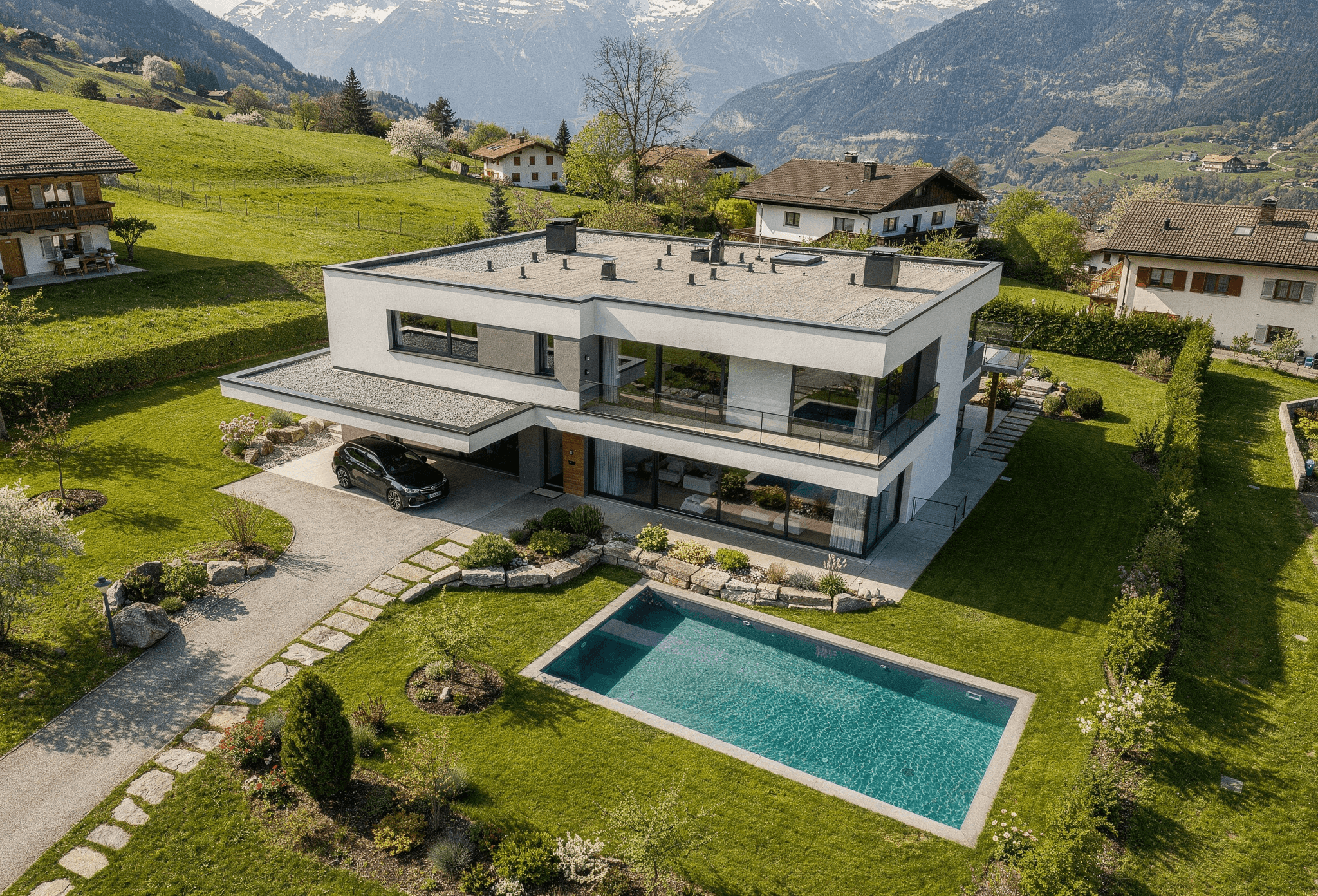 Manche Details lassen sich nur aus der Luft begreifen. Unsere Drohnenaufnahmen bieten eine spektakuläre Vogelperspektive, die die Architektur im Kontext ihrer Umgebung zeigt und Ihrer Immobilienpräsentation eine völlig neue Dimension verleiht.